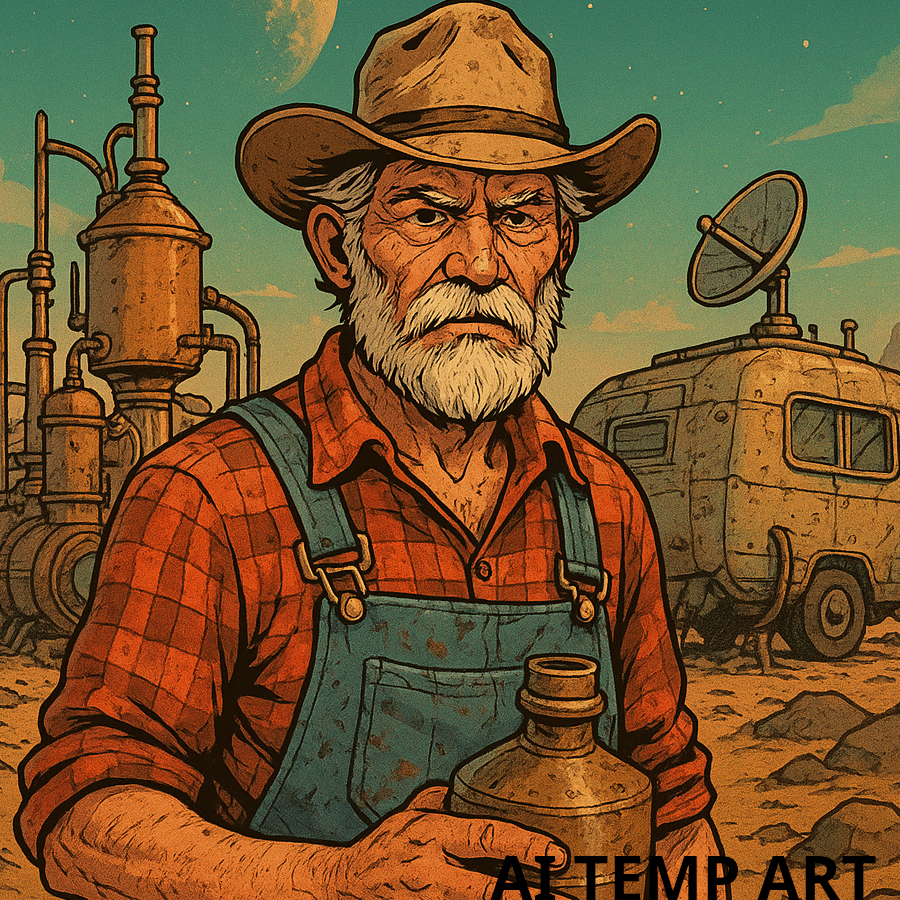 After a mishap involving your latest batch of outlaw cosmic moonshine, most frontier outposts on the galaxy’s edge have been abandoned. You—Earl “Starshine” McGraw, redneck engineer and questionable beverage pioneer—crash-land your space caravan on one of these forgotten rocks just as the Galactic Marshals start sniffing around.